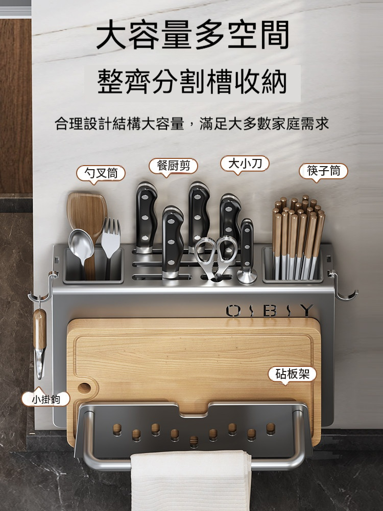 多功能壁掛廚具收納架✅ 一體式設計,空間極致利用✅ 壁掛安裝,解放檯面空間✅ 通風設計,保持乾燥不發霉