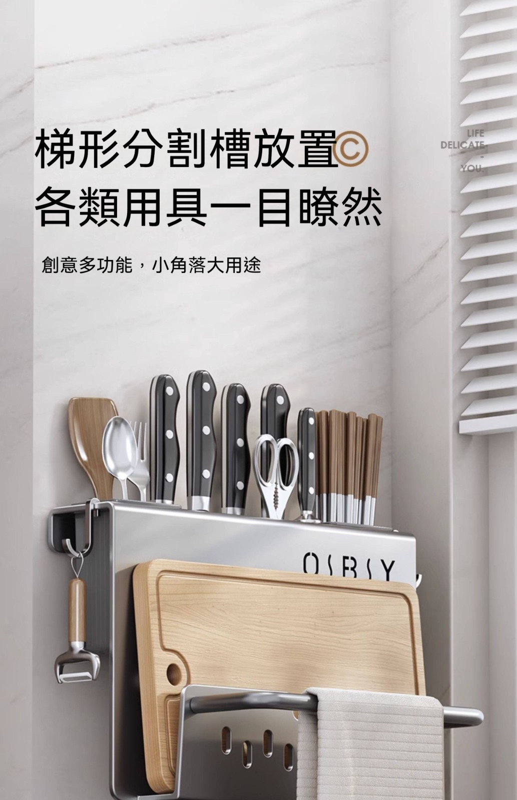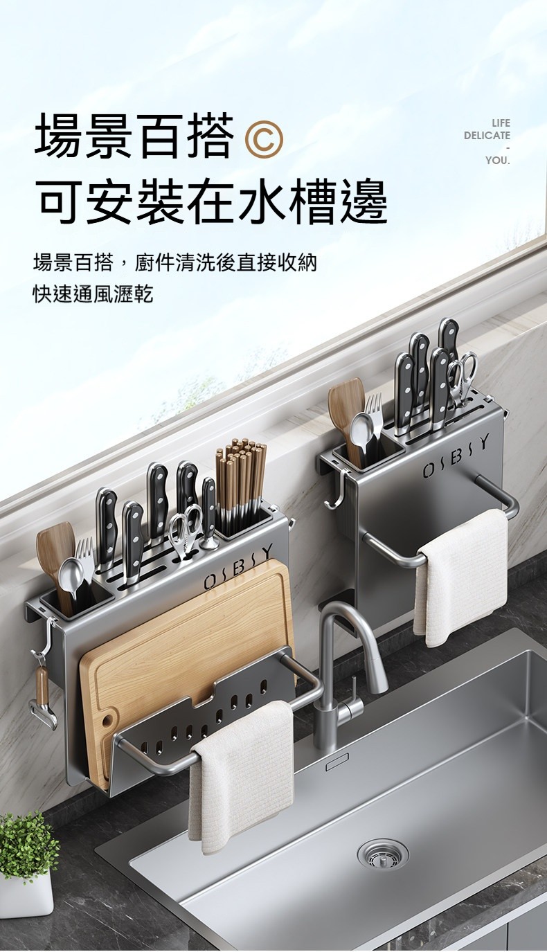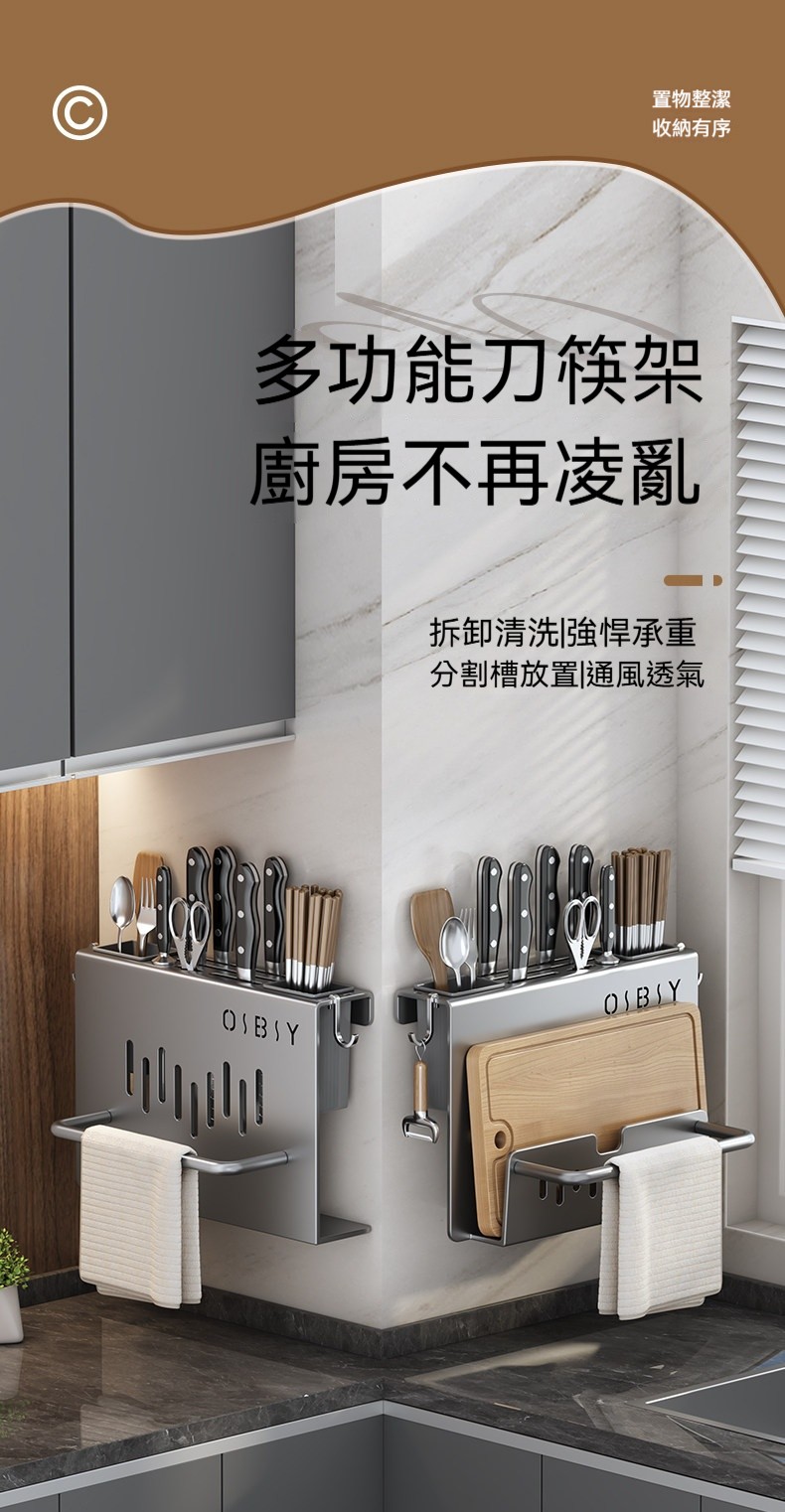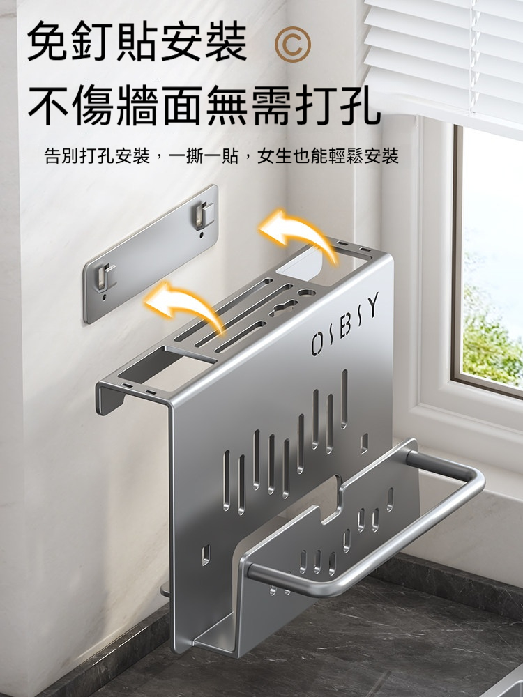 多功能壁掛廚具收納架✅ 一體式設計,空間極致利用✅ 壁掛安裝,解放檯面空間✅ 通風設計,保持乾燥不發霉