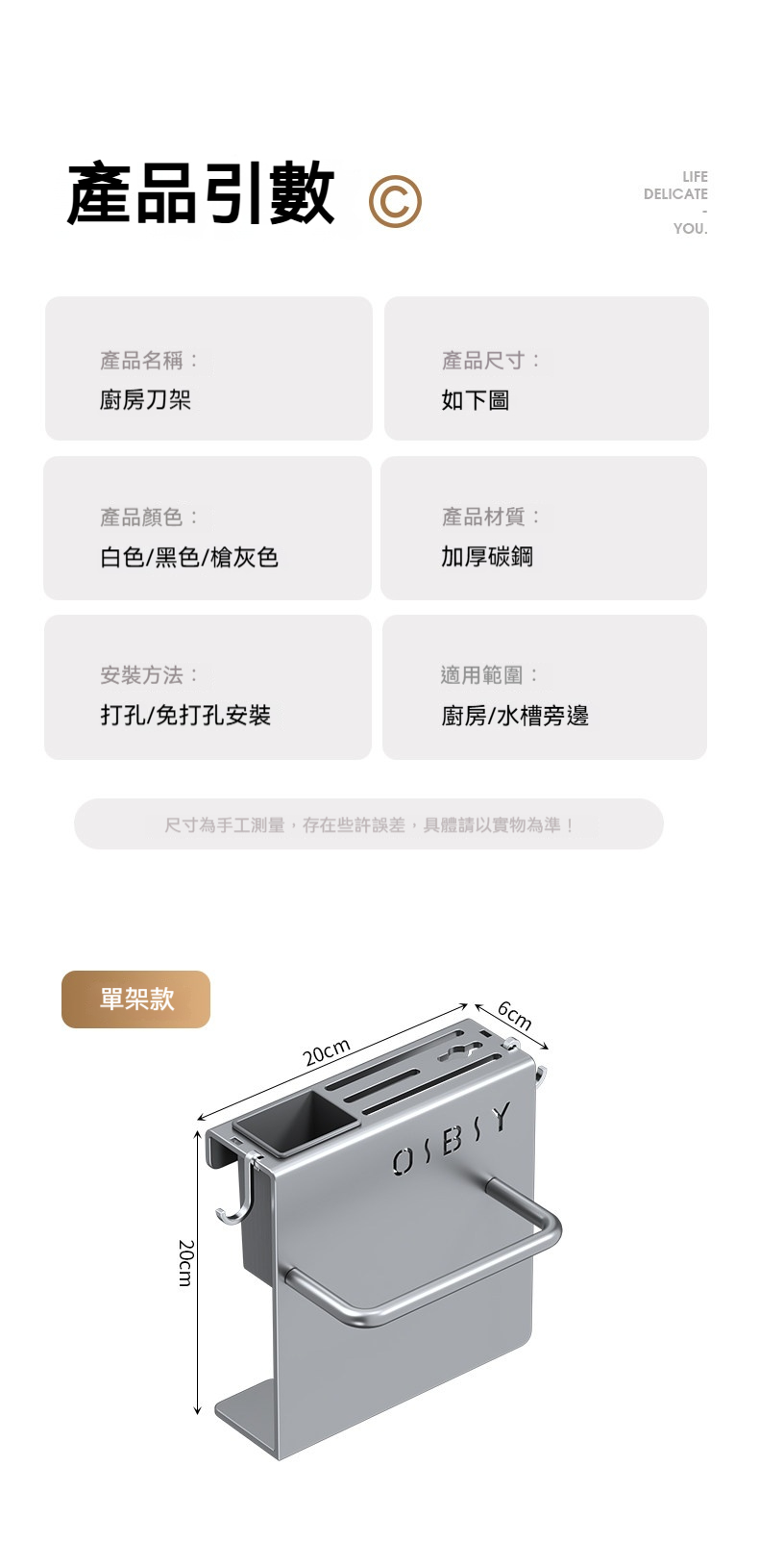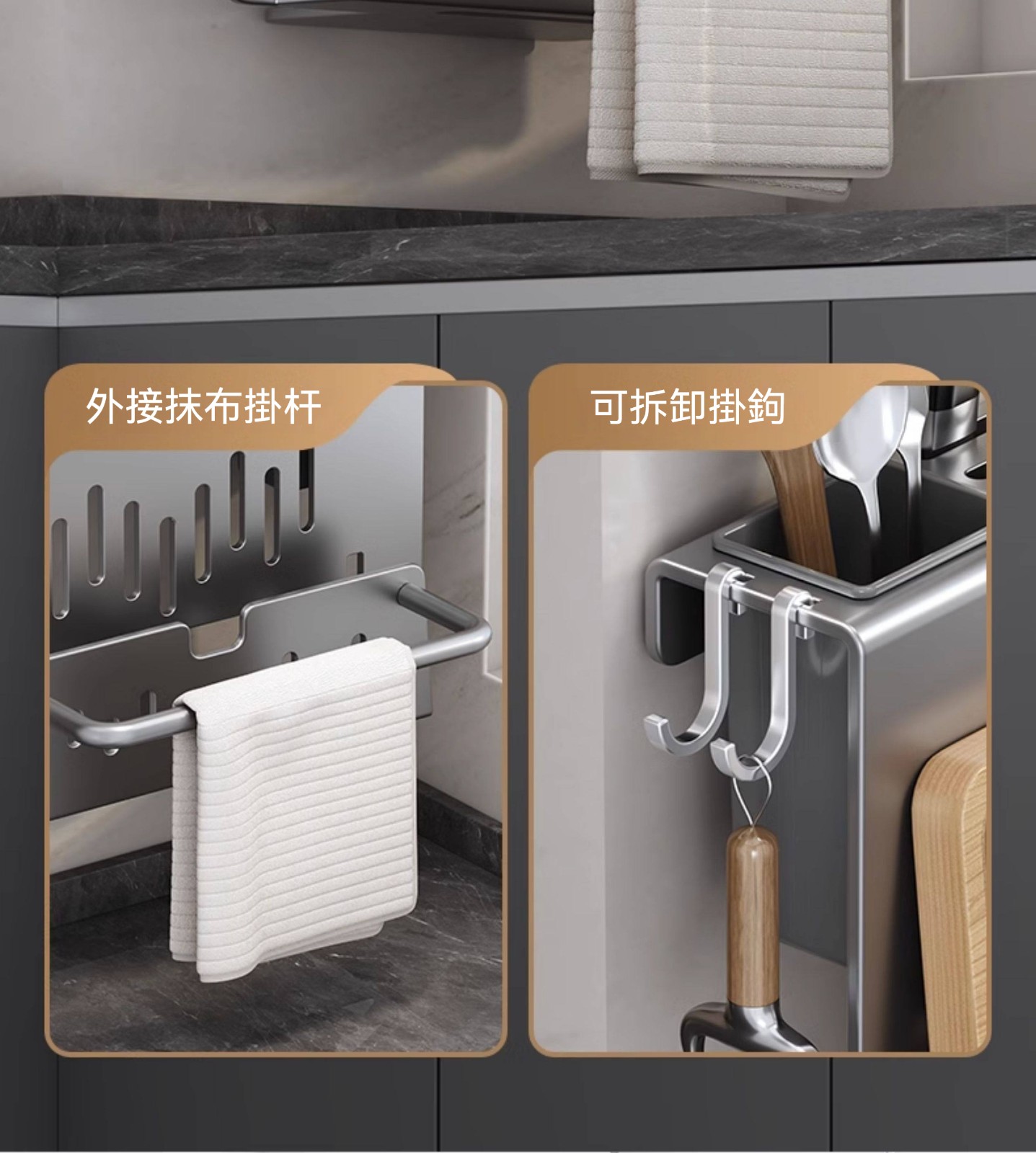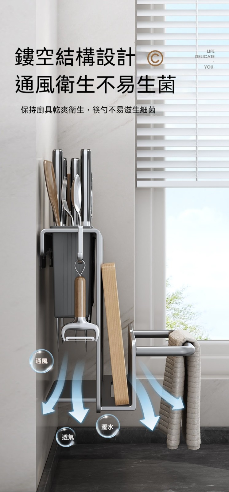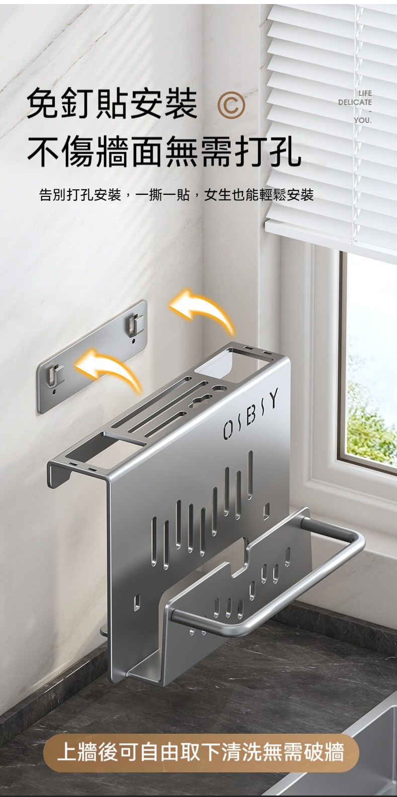 多功能壁掛廚具收納架✅ 一體式設計,空間極致利用✅ 壁掛安裝,解放檯面空間✅ 通風設計,保持乾燥不發霉